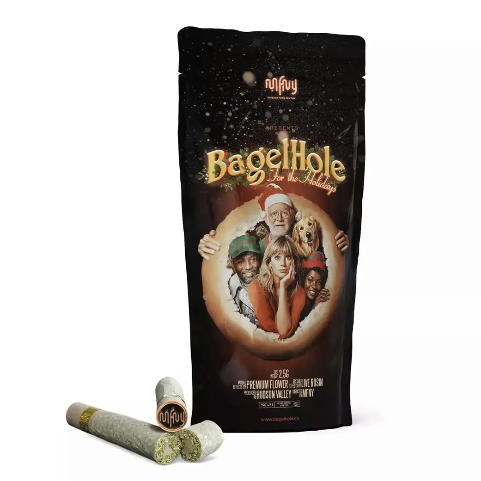 2.5 grams of a blend of our premium MFNY Candy Rain flower in a perfect, hand-made XL pre-roll with a .5 gram cylinder-shaped roll of our premium Candy Rain Live Rosin extract down the center (kind of like the cream cheese inside a freshly baked bagel). Having our real-deal Candy Rain Live Rosin extract inside this pre-roll results in a higher level of potency, natural flavors, and tantalizing fruity, peppery notes.